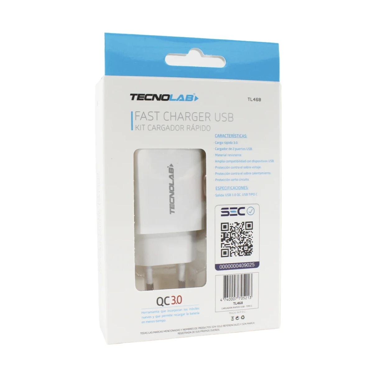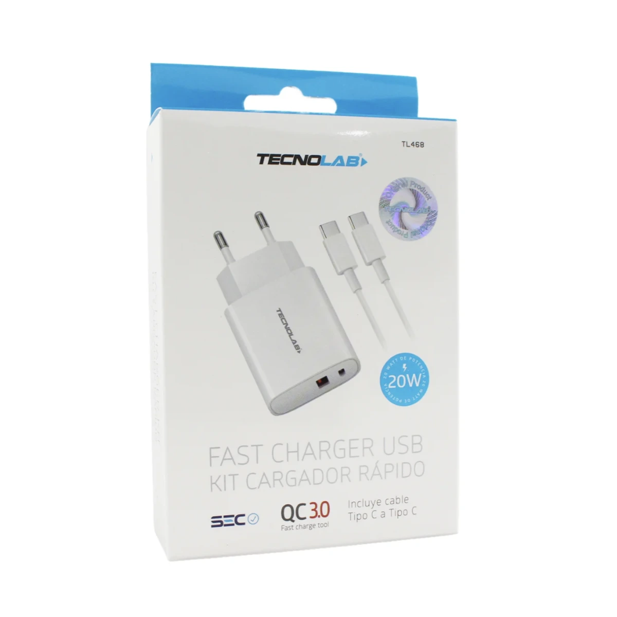 CARGADOR USB QC 3.0 20W CABLE TIPO C A TIPO C TECNOLAB TL468
